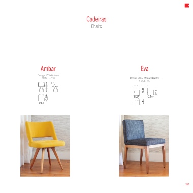 Cadeiras Chairs Ambar Eva Design 2019 Botaca AMB1, p.200 Design 2007 Manuel Bastos EV1, p.200 0,47 0,56 0,51 185