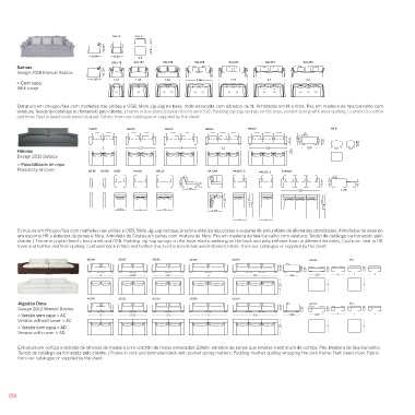 em espuma HR e édredon de penas e fibra; Almofada de Costas em penas com mistura de fibra; Pés em madeira de faia/carvalho com velatura; Tecido de catálogo ou fornecido pelo