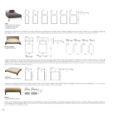 Cabeceira: Estrutura em choupo/faia e OSB; Estofo espuma de diferentes densidades; Base: Estrutura em choupo/faia com malhetes nas uniões e estrado metálico com régua de