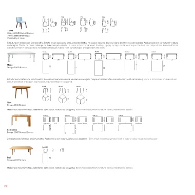 Estrutura em madeira de faia/carvalho; Acabamento em cor natural, velatura ou lacagem; Tampo em madeira faia/carvalho com velatura/lacado. | Frame in beech/oak; finish in natural