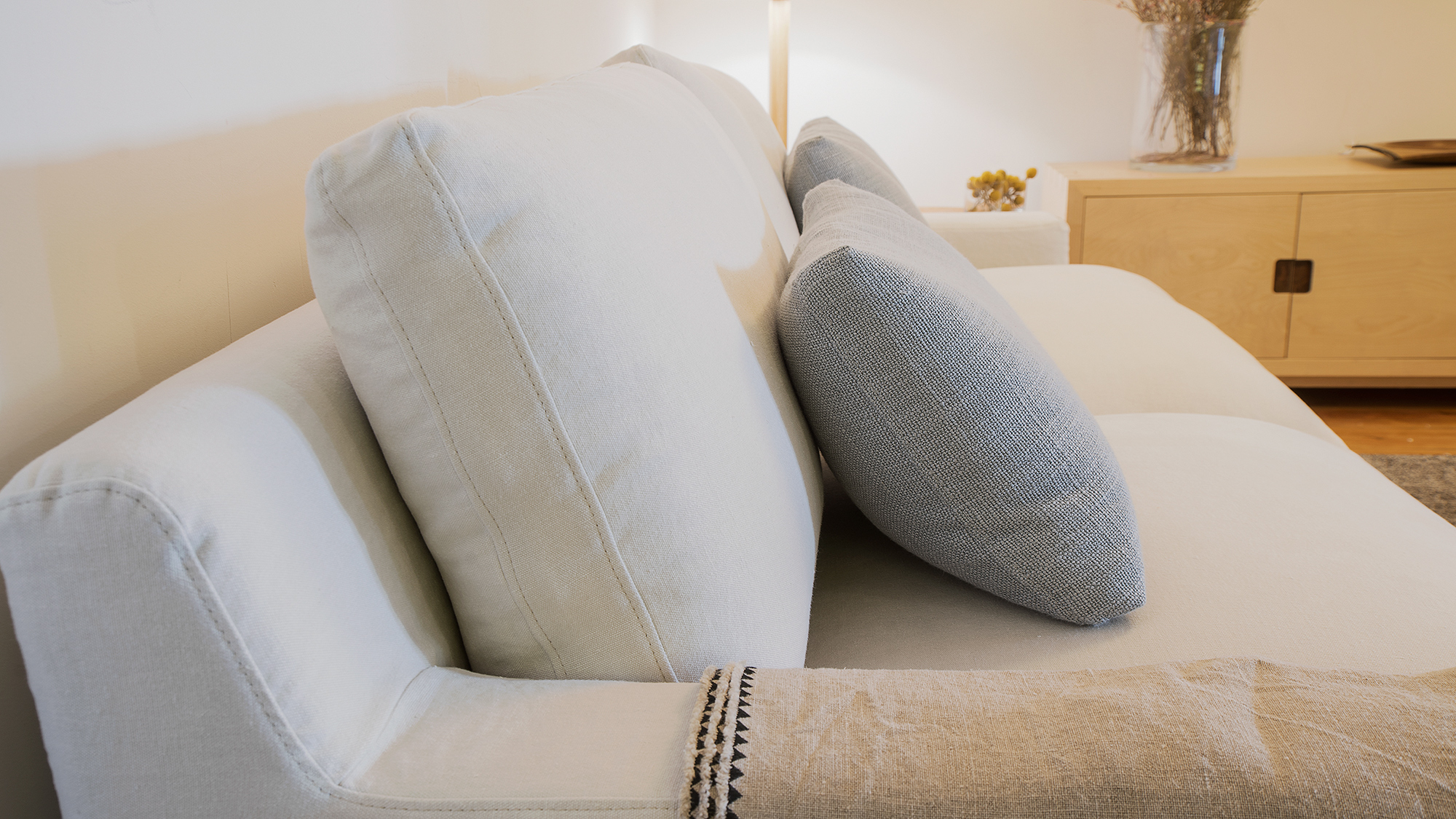 Cushions back: fibre and feather mix