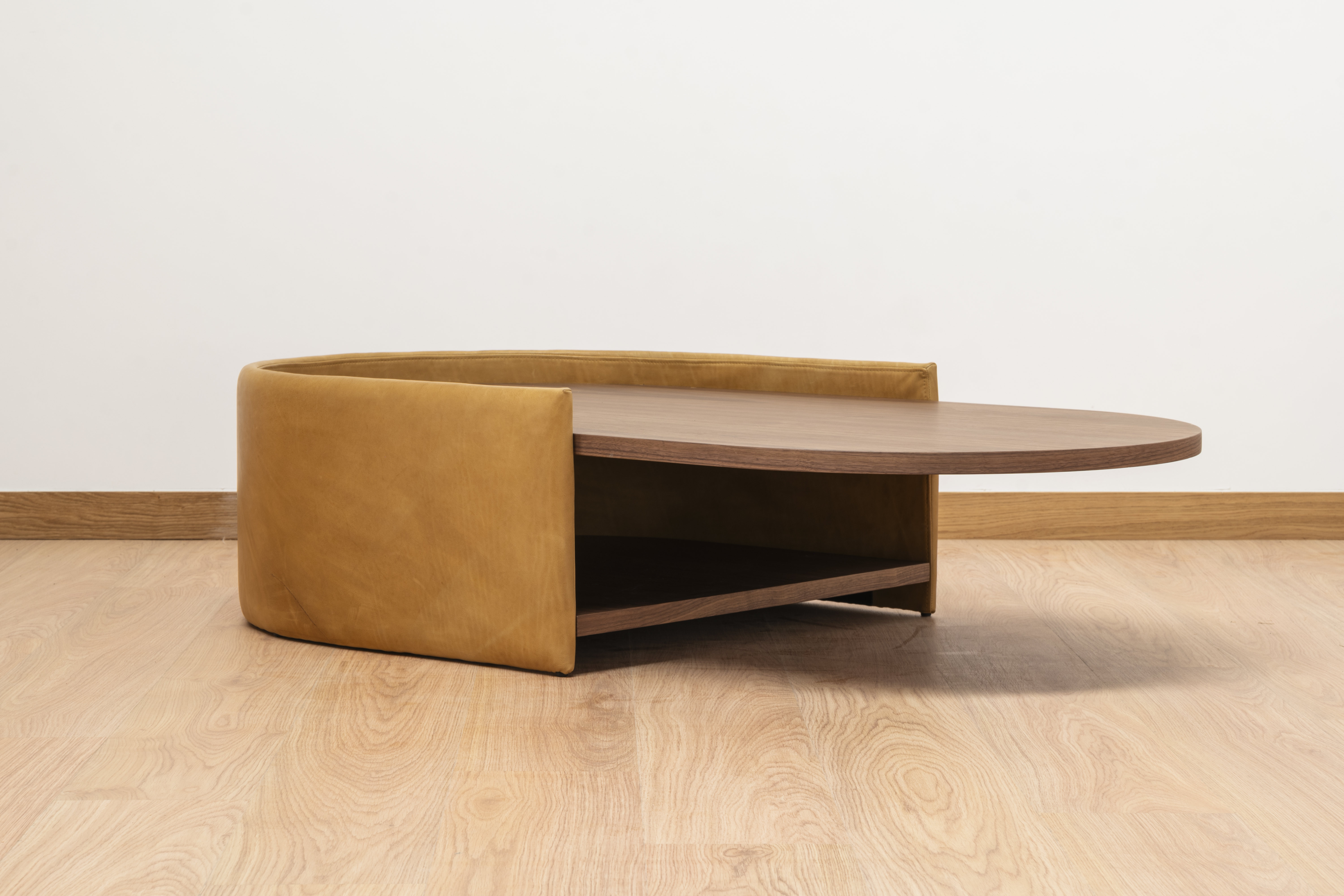 Contraplacado forrado a tecido ou pele.